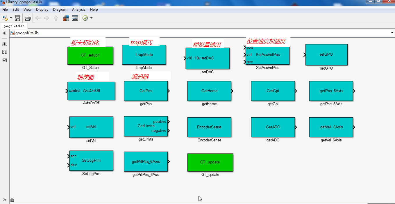 在六关节机器人控制系统模型中,我公司主要提供了控制算法示例模型和运动控制的硬件模型库。用户可基于本实验示例,任意替换机器人控制模型的各个算法模块,在无需关注底层软硬件接口实现的前提下,快速验证自己的机器人控制系统算法模型。