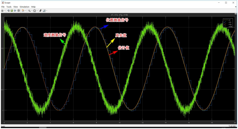 Step2: 打开示波器,结果如下图所示,从结果可以看出,估计值能够很好的符合实际值。