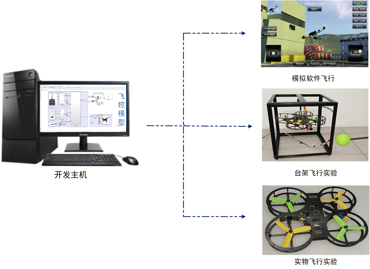 同时支持数学仿真实验、模拟软件飞行实验、台架实验和实物飞行实验;
